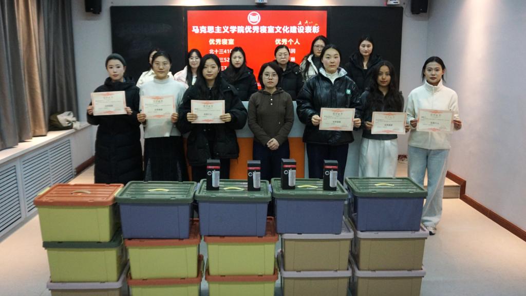 座谈会后开展优秀寝室及优秀个人表彰活动,4个寝室获评“优秀寝室”,韩鸿润、刘琳、韩茵茵和宋艺4名寝室长获评“优秀个人”。阚婧老师为优秀寝室和优秀个人颁发证书和奖品,同时勉励所有寝室以榜样为标杆,保持良好生活习惯,助力学院优良学风建设。